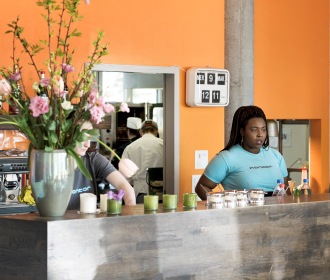 Das LadenBistro Tössfeld befindet sich am Rand des lebendigen Sulzer-Areals in Winterthur und ist in wenigen Gehminuten vom Bahnhof Winterthur erreichbar. Das renovierte Bistro mit grosser Fensterfront ist ein Treffpunkt im Quartier, der zu jeder Zeit etwas im Angebot hat. Unser kreatives Küchenteam verwöhnt die Gäste mit einem wechselnden saisonalen Mittagsmenü, vegi oder mit Fleisch, und Take-away.